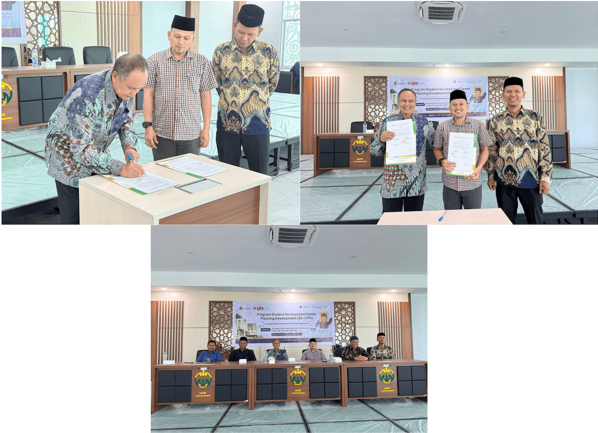 Rangkaian kegiatan ditutup dengan penandatanganan MoU antara UPI dengan Pascasarjana, FTIK, dan FUAD UIN Sultanah Nahrasiyah Lhokseumawe. Kerja sama ini diharapkan menjadi langkah strategis dalam memperkuat sinergi antarperguruan tinggi, khususnya dalam pengembangan layanan mahasiswa, peningkatan kompetensi lulusan, serta perencanaan karier yang berkelanjutan.