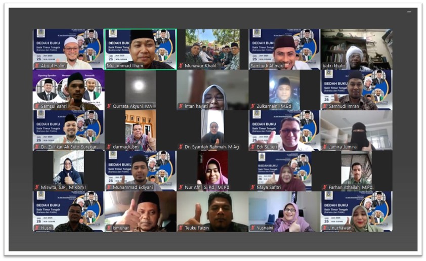 Pascasarjana UIN Suna | Pascasarjana UIN Sultanah Nahrasiyah Lhokseumawe kembali menunjukkan eksistensinya sebagai ruang ilmiah terbuka bagi pengembangan diskursus global dengan menyelenggarakan kegiatan Bedah Buku “Satir Timur Tengah (Bahasa dan Politik)”. Kegiatan yang dilaksanakan pada Kamis 26/06/2025 ini dipandu oleh Samhudi, Lc., LLM. sebagai moderator dan Abdul Halim, Lc., LLM. sebagai pemantik. Keduanya merupakan mahasiswa aktif Program Doktor Studi Islam UIN Sultanah Nahrasiyah Lhokseumawe.