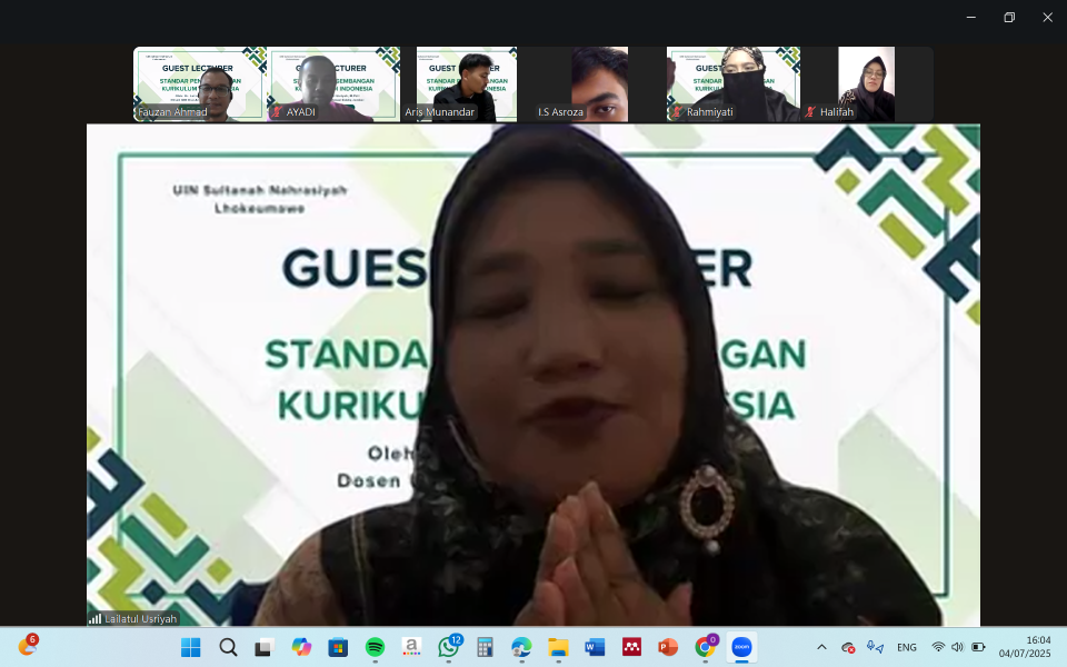 Pascasarjana UIN Lhokseumawe | Program Studi Manajemen Pendidikan Islam Pascasarjana UIN Sultanah Nahrasiyah Lhokseumawe kembali menunjukkan komitmennya dalam memperkaya wawasan akademik mahasiswa melalui kegiatan Guest Lecturer bertajuk “Standar Pengembangan Kurikulum di Indonesia”.