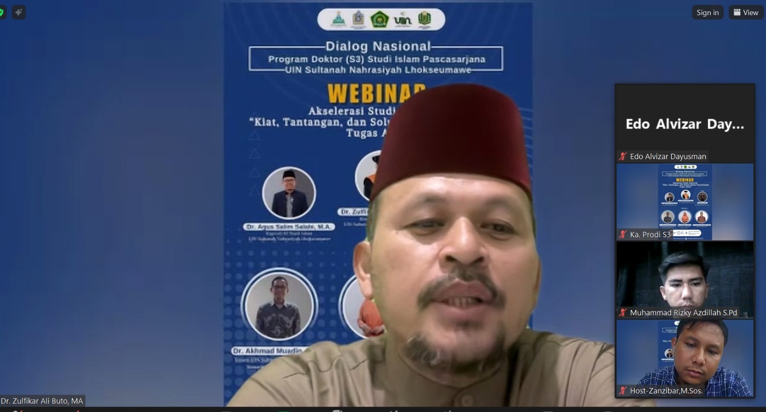 Pascasarjana UINSUNA | Lhokseumawe, 22 Oktober 2025 — Pascasarjana Universitas Islam Negeri Sultanah Nahrasiyah (UINSUNA) Lhokseumawe terus memperkuat komitmen akademiknya melalui penyelenggaraan Dialog Nasional Program Doktor (S3) Studi Islam bertema “Akselerasi Studi Doktoral: Kiat, Tantangan, dan Solusi dalam Penyelesaian Tugas Akhir.” Kegiatan yang digelar pada Rabu malam (22/10/2025) ini berlangsung secara daring dan luring terbatas, diikuti oleh mahasiswa doktoral, dosen, serta akademisi dari berbagai perguruan tinggi Islam di Indonesia.