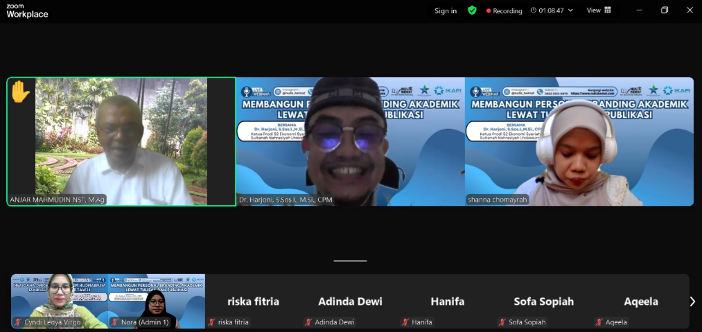 Webinar ini menghadirkan narasumber utama Dr. Harjoni, S.Sos.I., M.Si., CPM., yang saat ini menjabat sebagai Ketua Program Studi Magister Ekonomi Syariah UIN Sultanah Nahrasiyah. Acara ini diselenggarakan secara daring dan terbuka untuk umum, serta berhasil menarik minat puluhan peserta dari berbagai kalangan, mulai dari dosen, mahasiswa pascasarjana, praktisi, hingga masyarakat umum yang memiliki minat pada pengembangan akademik dan dunia literasi digital.
